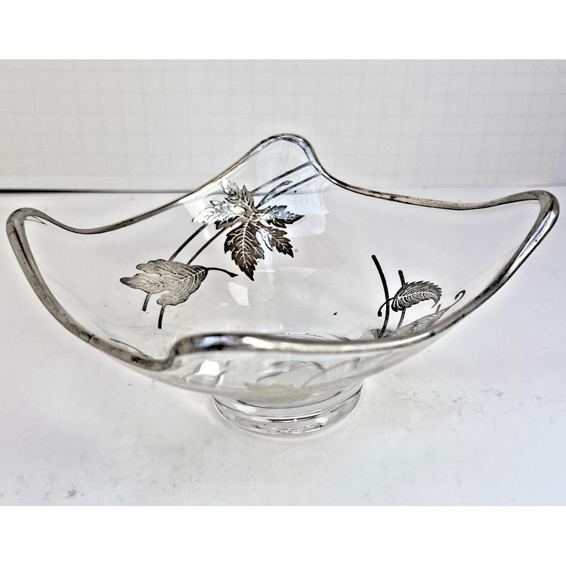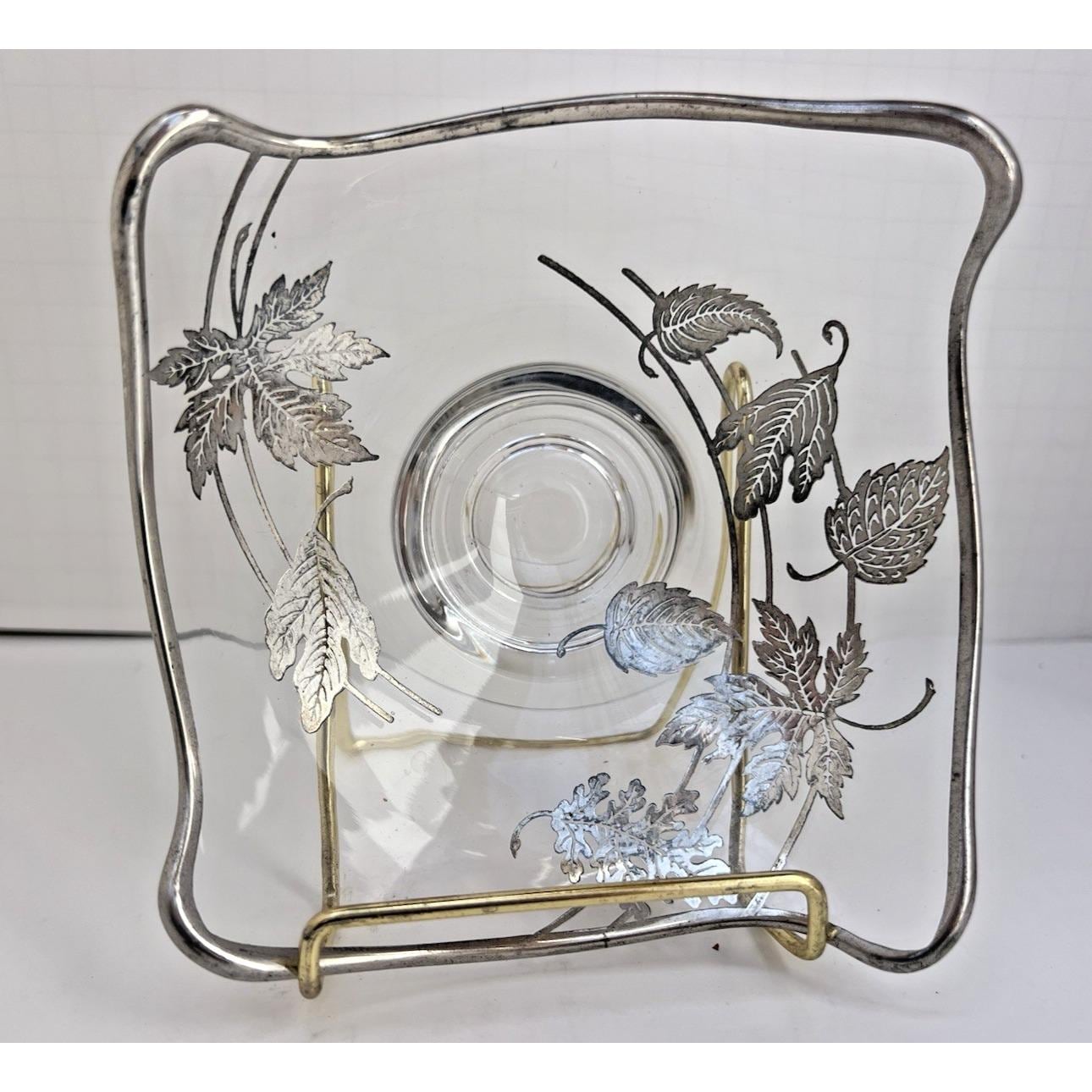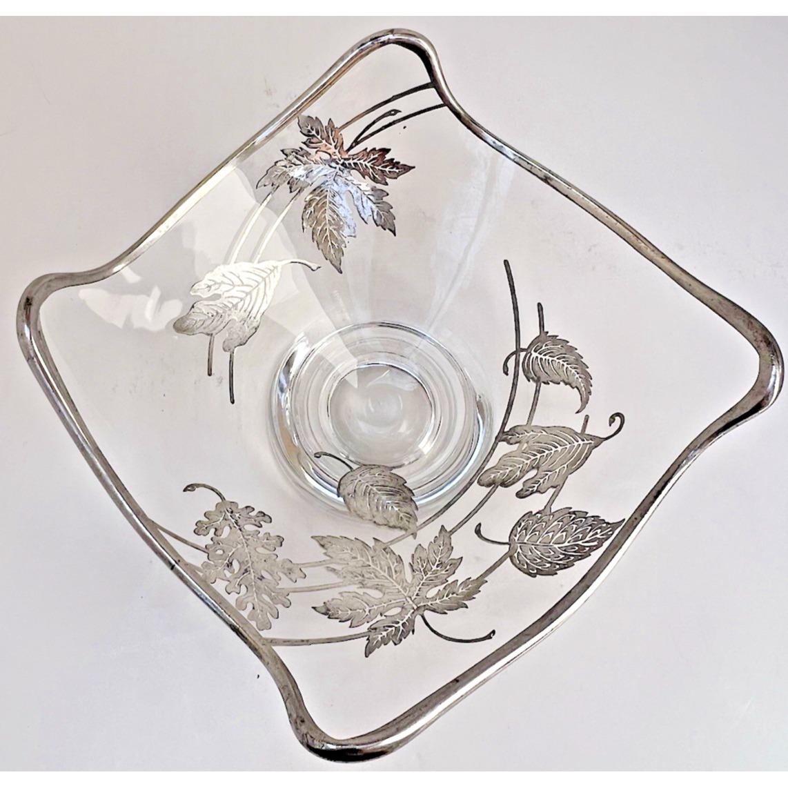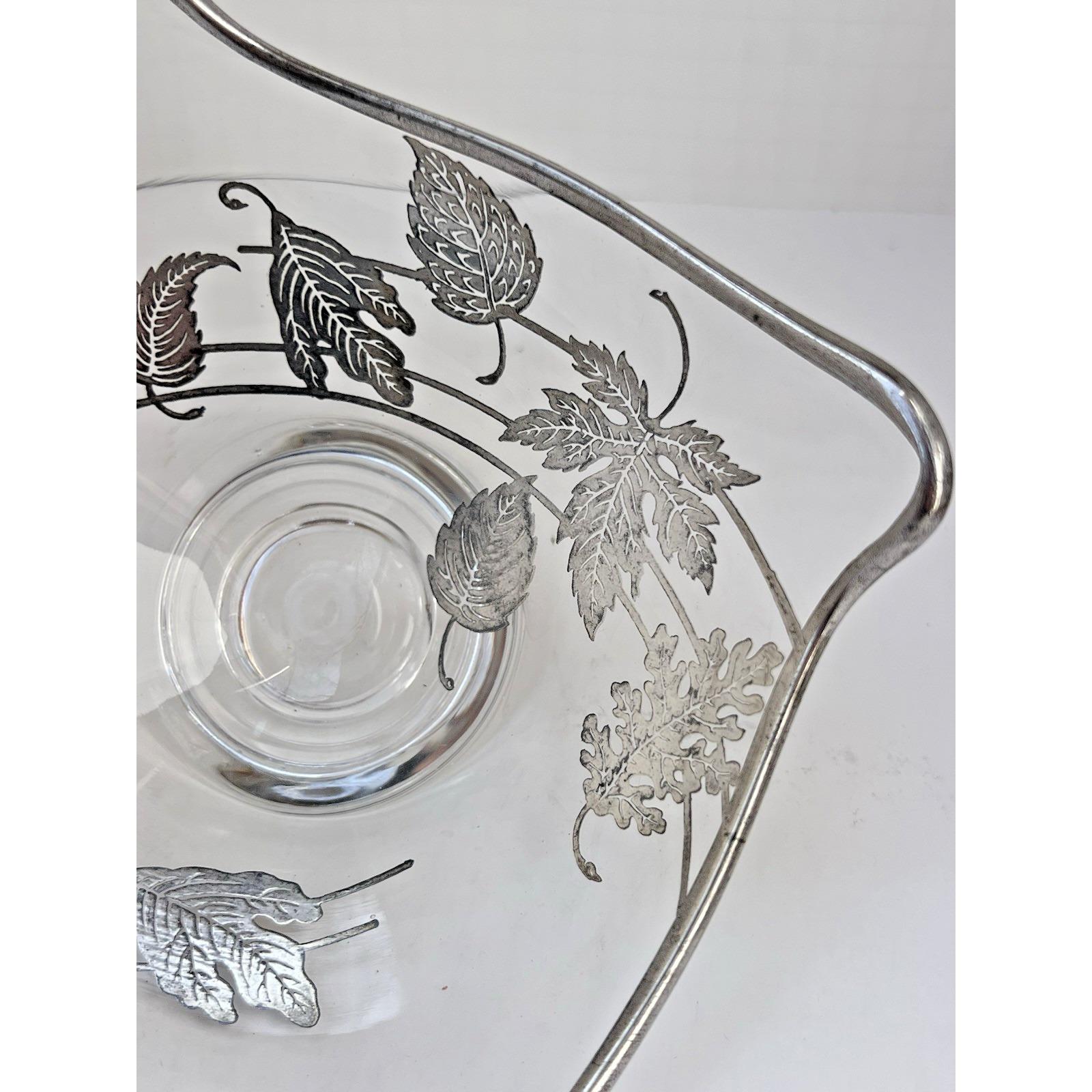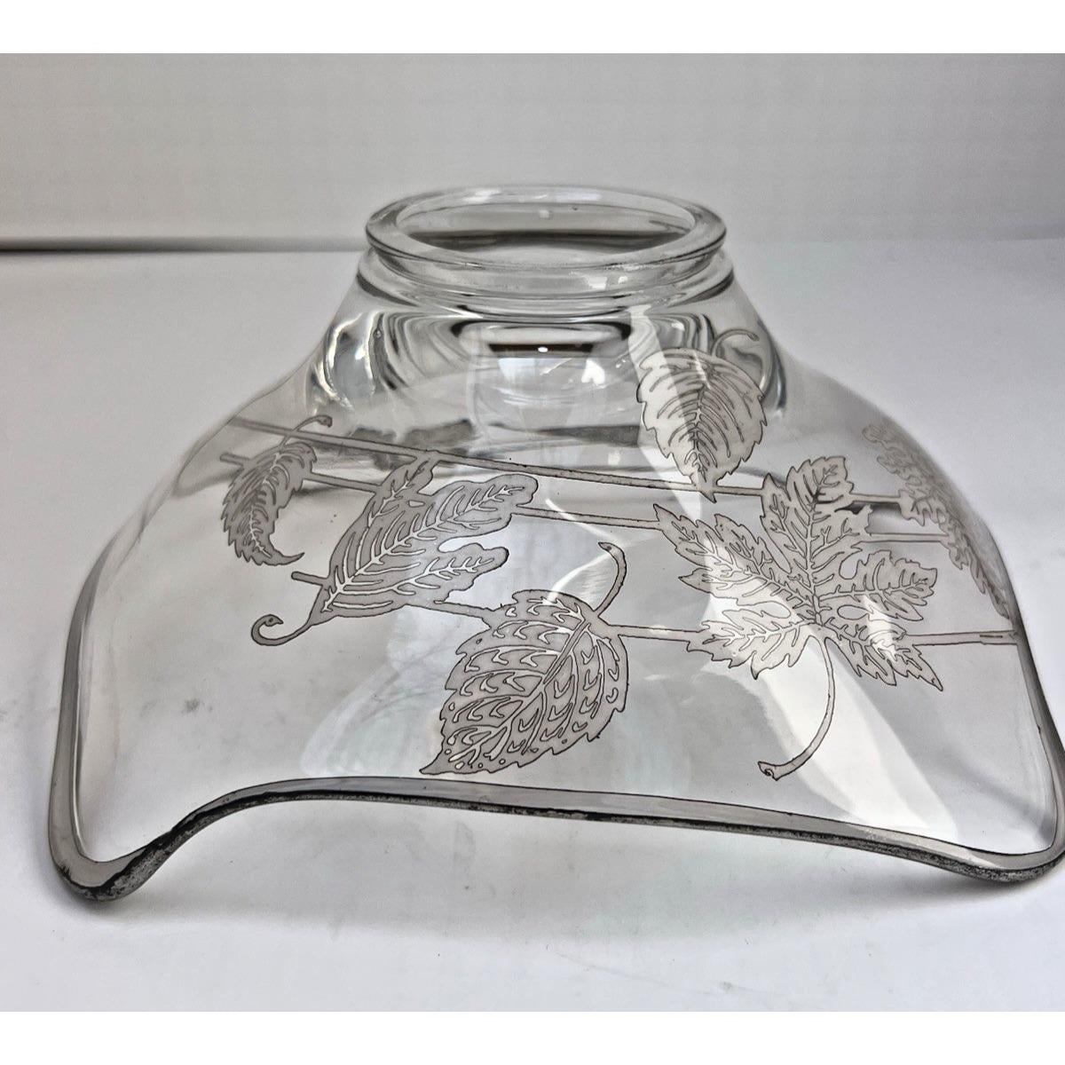 A beautifully understated vintage glass candy dish featuring a delicate silver leaf etched design and softly curved square shape. The detailing feels light and organic, giving it that effortless mid-century charm.
