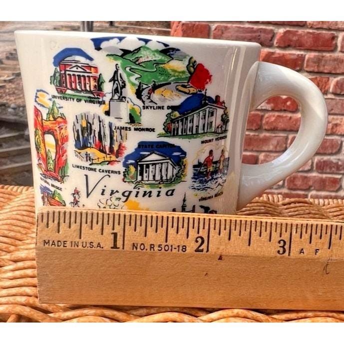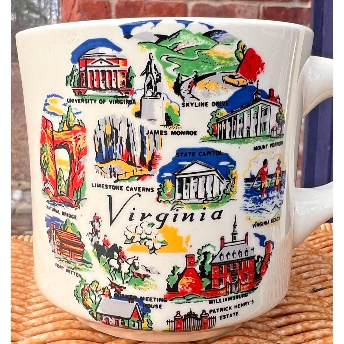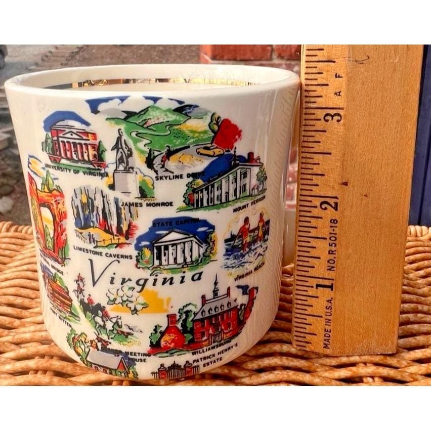 The Vintage Conrad Crafters Virginia Landmark Souvenir Mug with Gold Trim is a collectible item that celebrates the landmarks and history of Virginia. Made in the United States, this mug features intricate gold trim and is a perfect souvenir for those who appreciate vintage items and travel memorabilia. Perfect for collectors or as a thoughtful gift for someone who loves Virginia or has visited the state. This mug is a unique piece of Americana that captures the essence of Virginia's rich heritage.