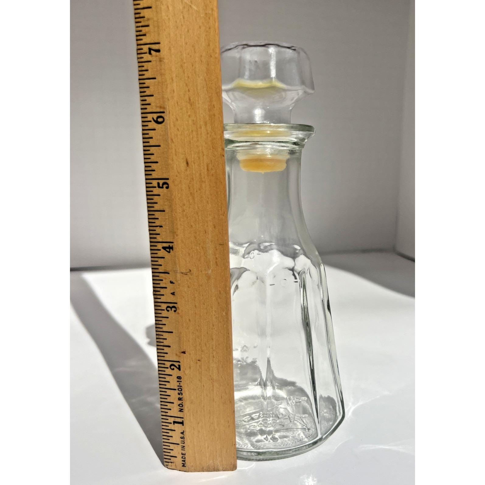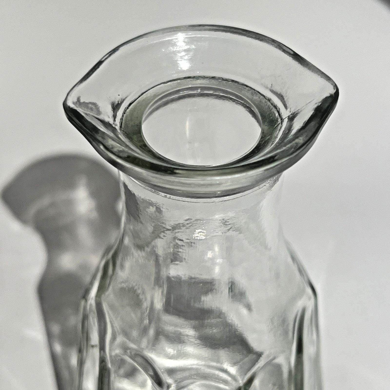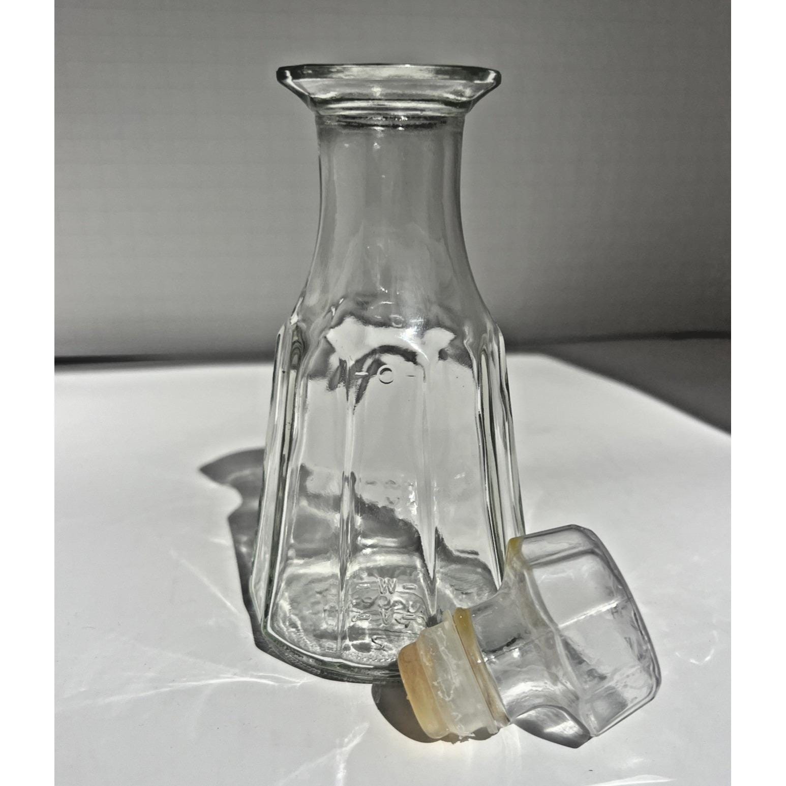 Classic Vintage Good Seasons glass cruet bottle, the kind that instantly brings back memories of making homemade Italian dressing right on the kitchen counter. Clear pressed glass with a faceted design and the original stopper, simple and timeless.