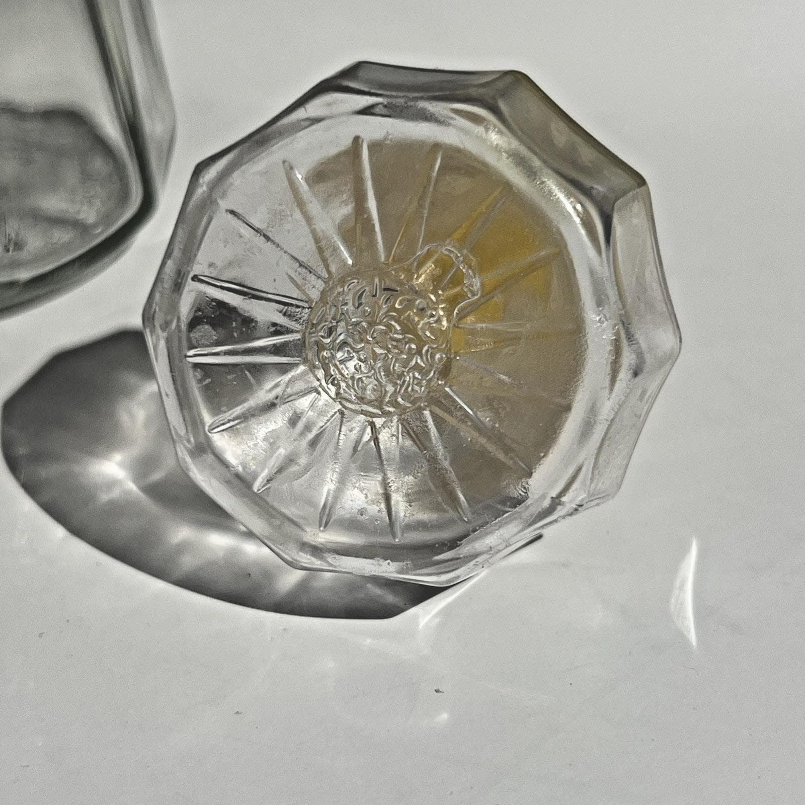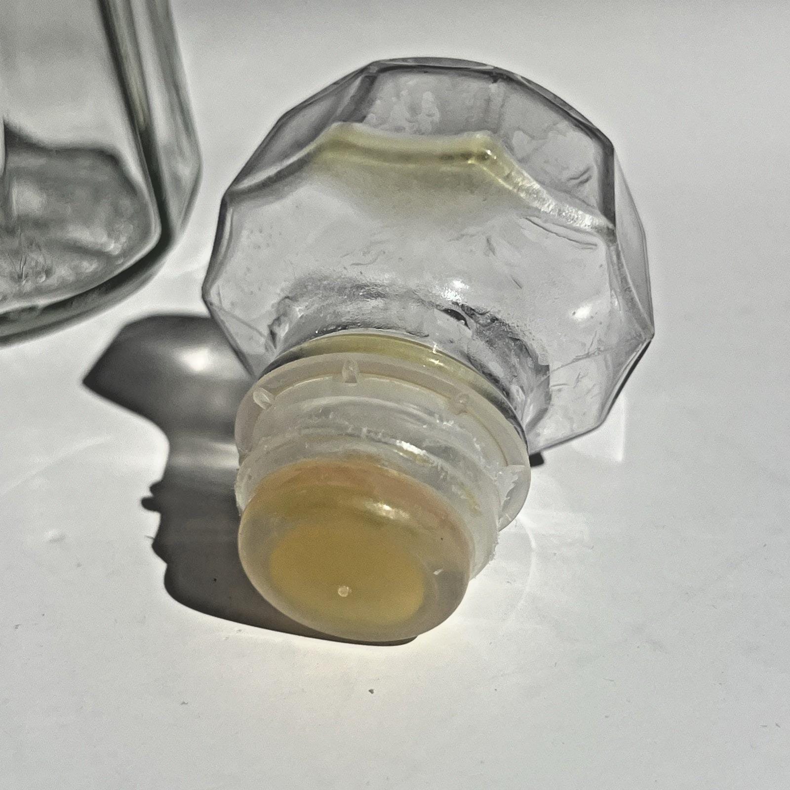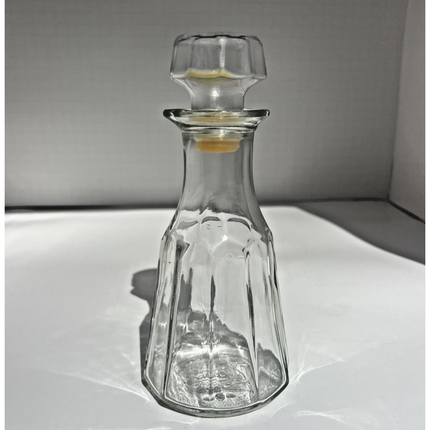 Classic Vintage Good Seasons glass cruet bottle, the kind that instantly brings back memories of making homemade Italian dressing right on the kitchen counter. Clear pressed glass with a faceted design and the original stopper, simple and timeless.