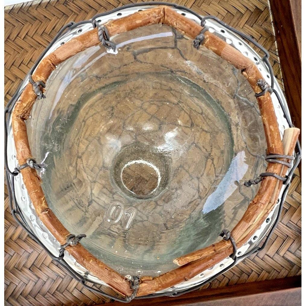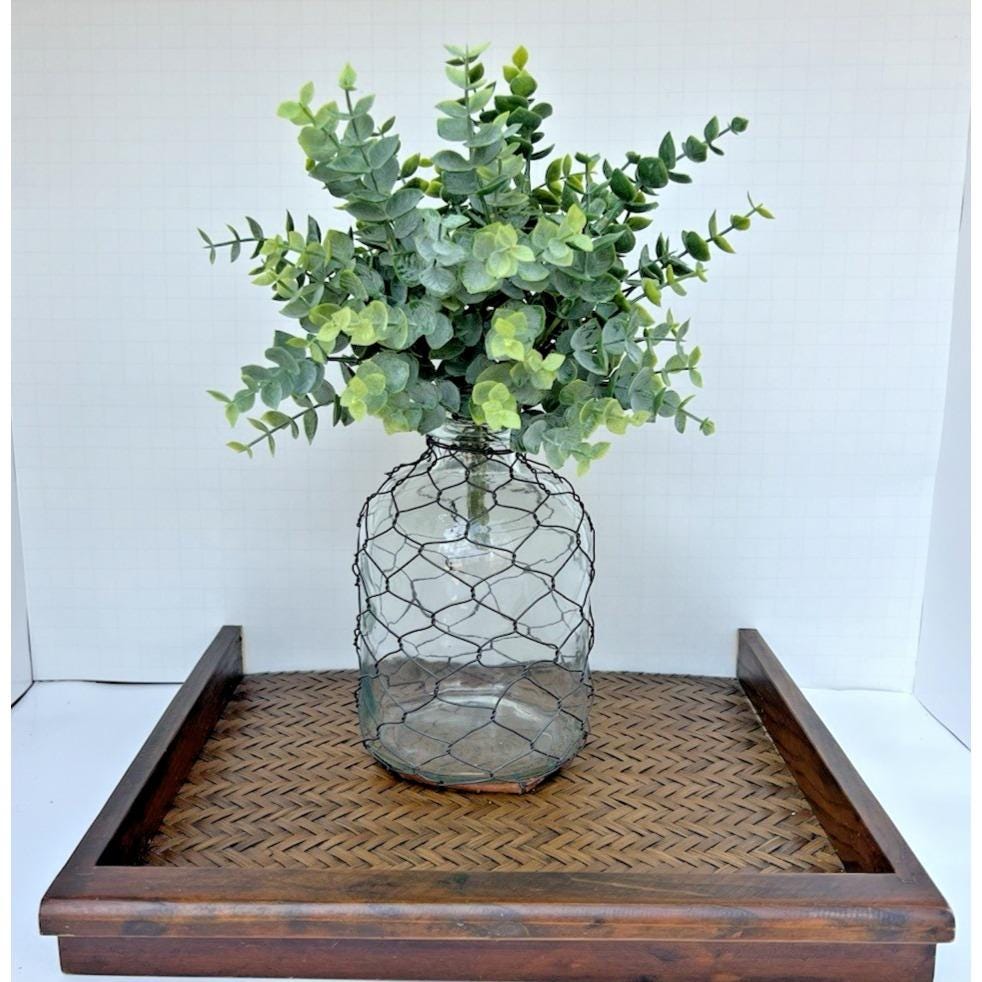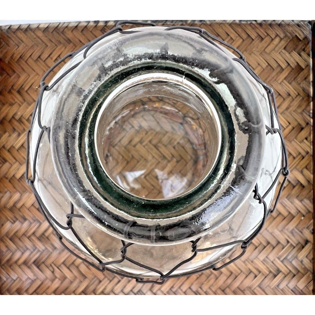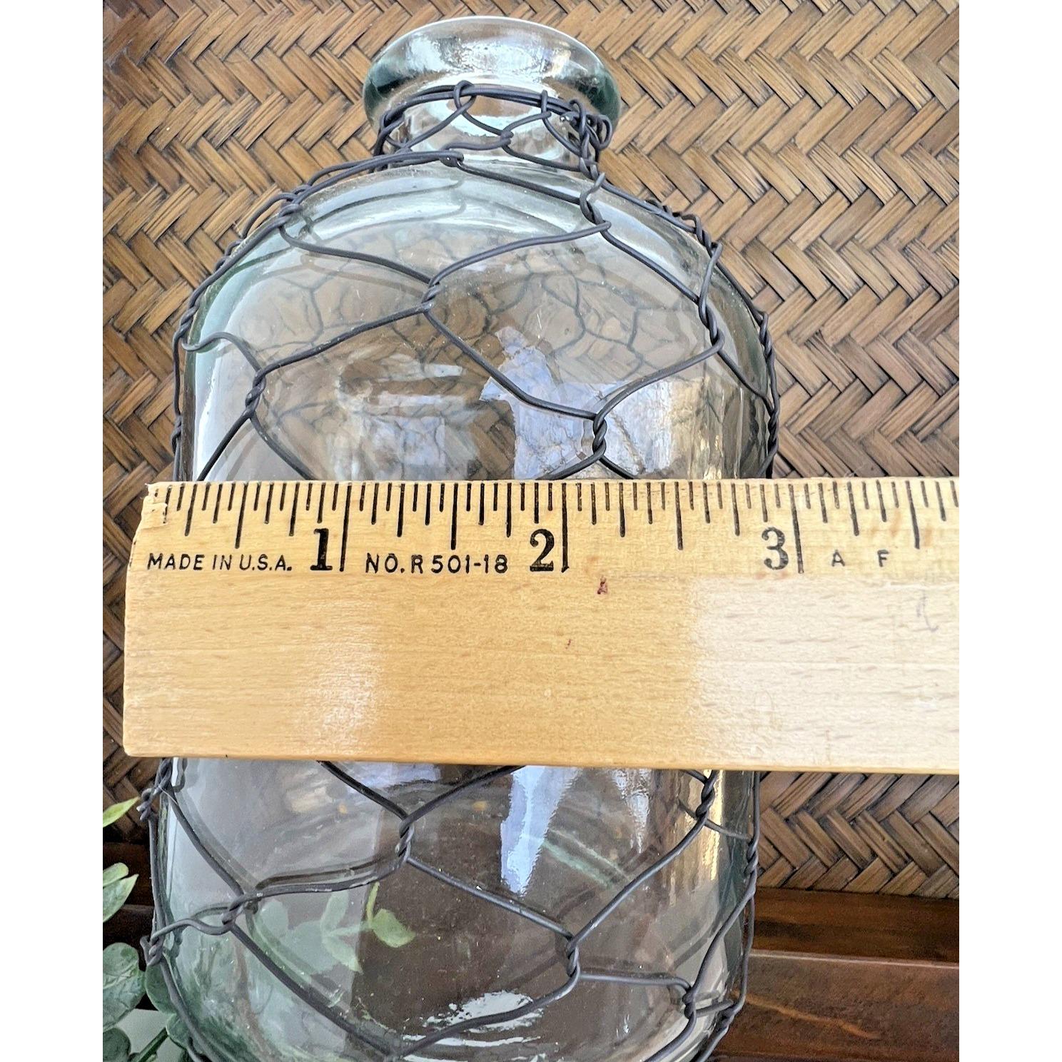 Clear glass jug wrapped in chicken wire, giving it that farmhouse/apothecary feel without trying too hard. Looks great styled with greenery (like shown), dried florals, or even on its own as a statement piece.