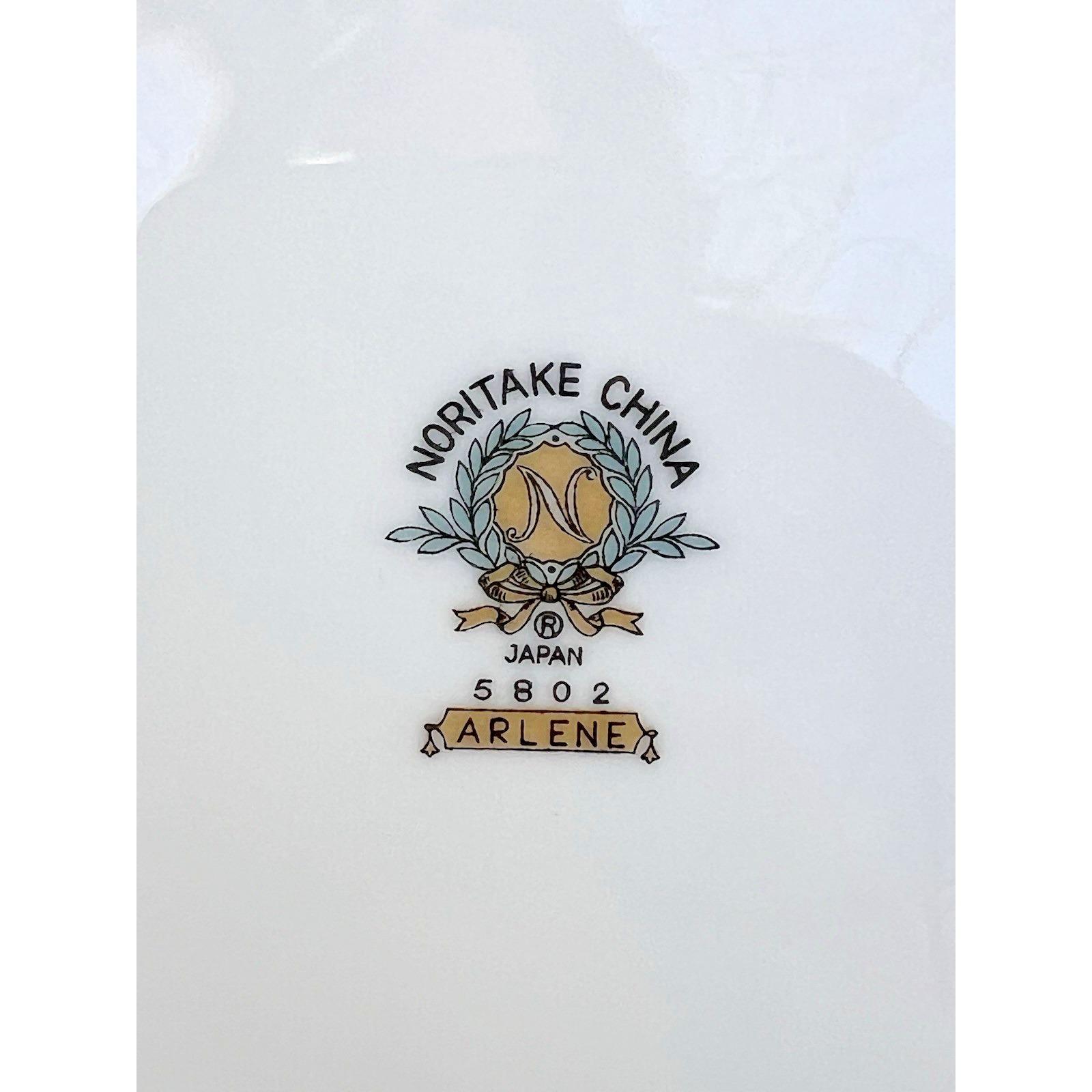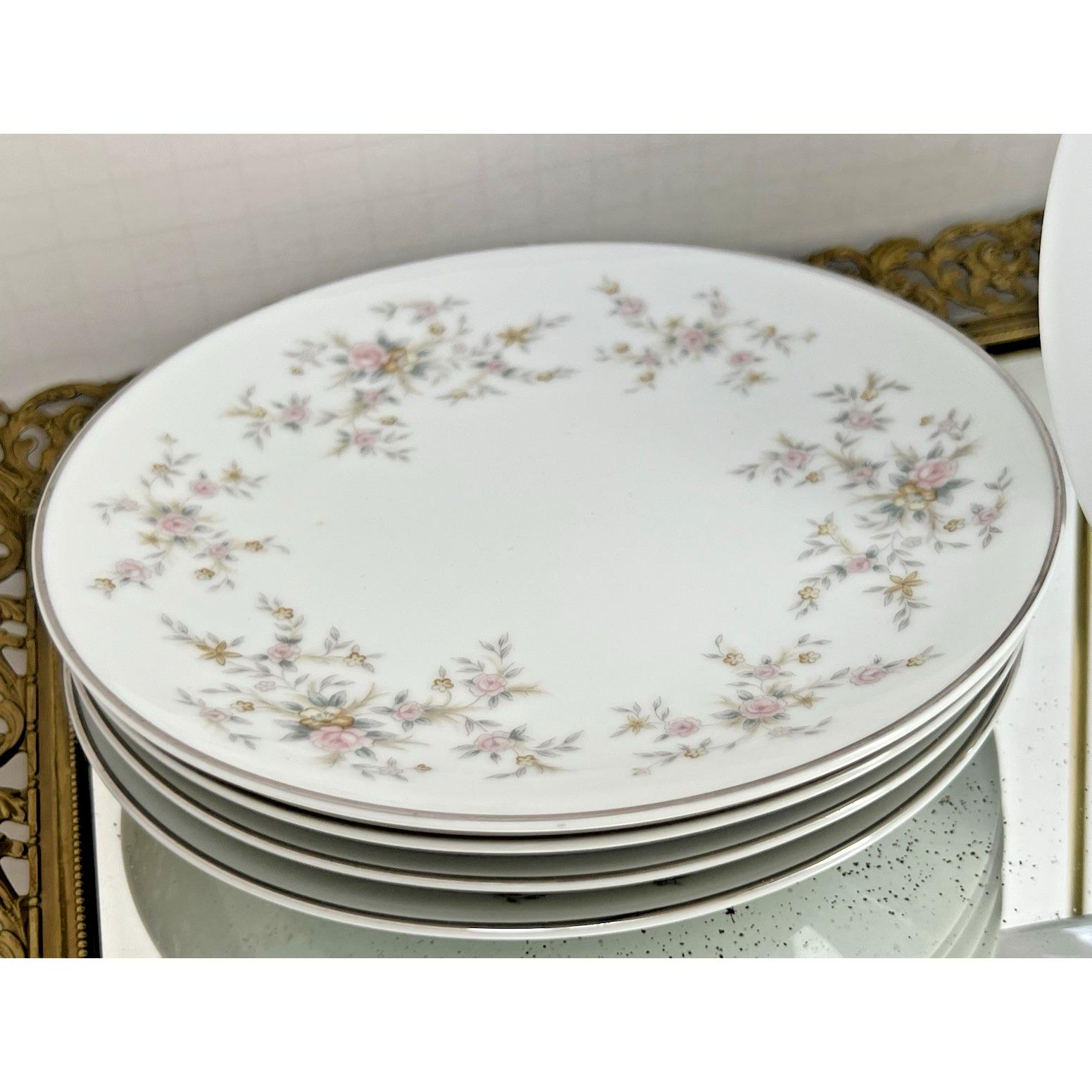 Set of 5 Noritake "Arlene" (Pattern 5802) bread & butter plates featuring a delicate floral design with platinum trim. A timeless, elegant pattern that works beautifully for everyday use or more formal settings.