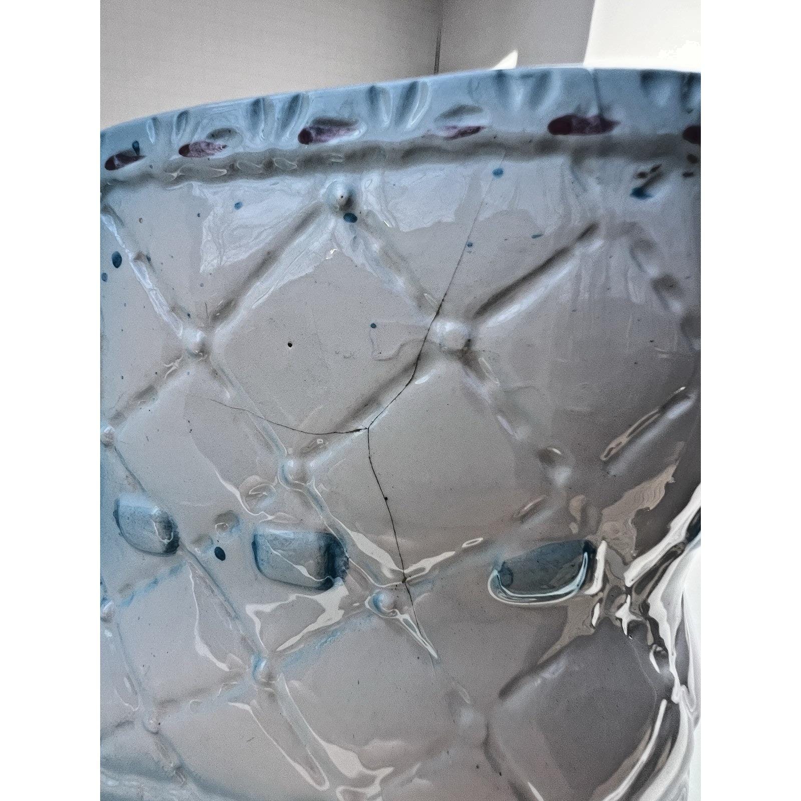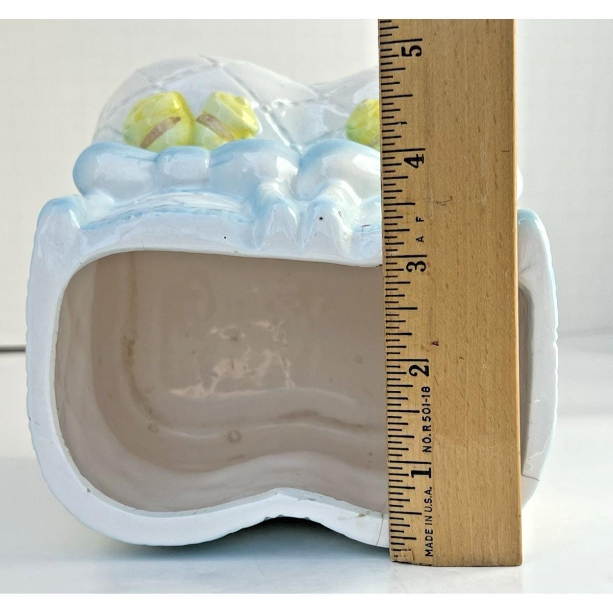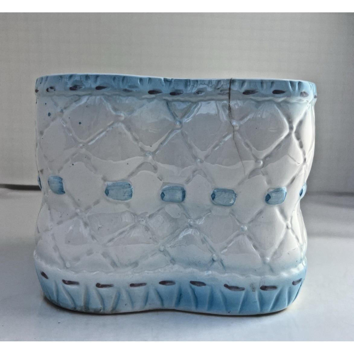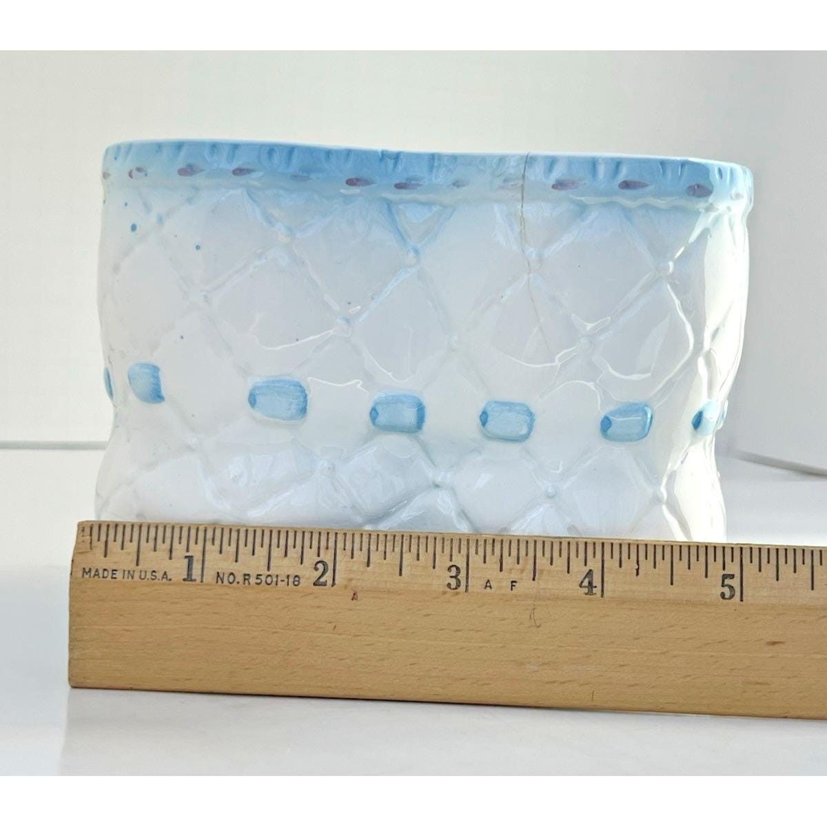 This piece has that sweet, nostalgic character often seen in vintage baby decor, with quilted-style texture and delicate accents that make it stand out when styled. It works beautifully as a planter, decorative accent, or nursery piece.