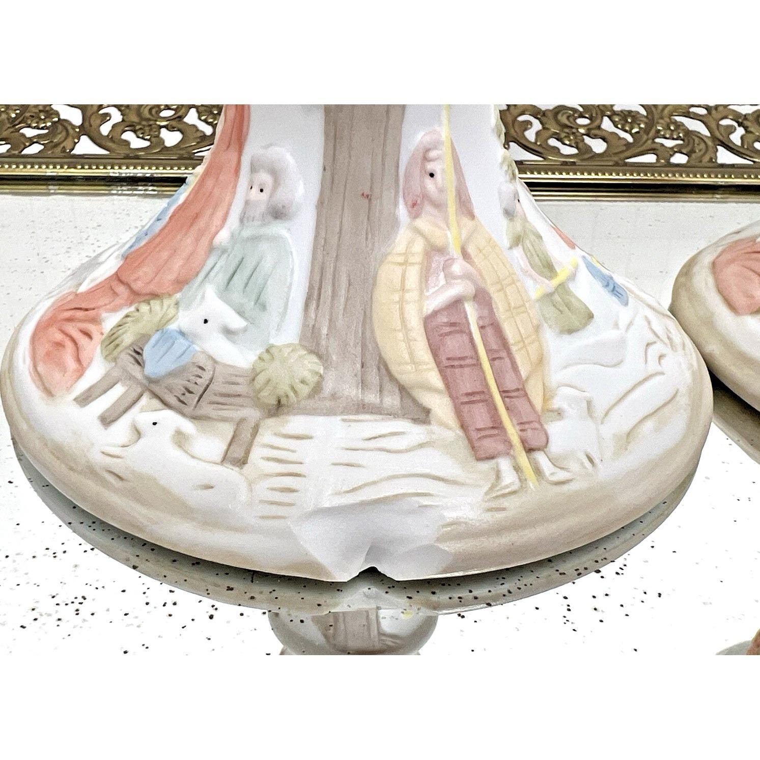 These elegant porcelain pieces feature detailed hand-painted nativity scenes with soft pastel colors, making them a perfect addition to any Christmas décor or collection.