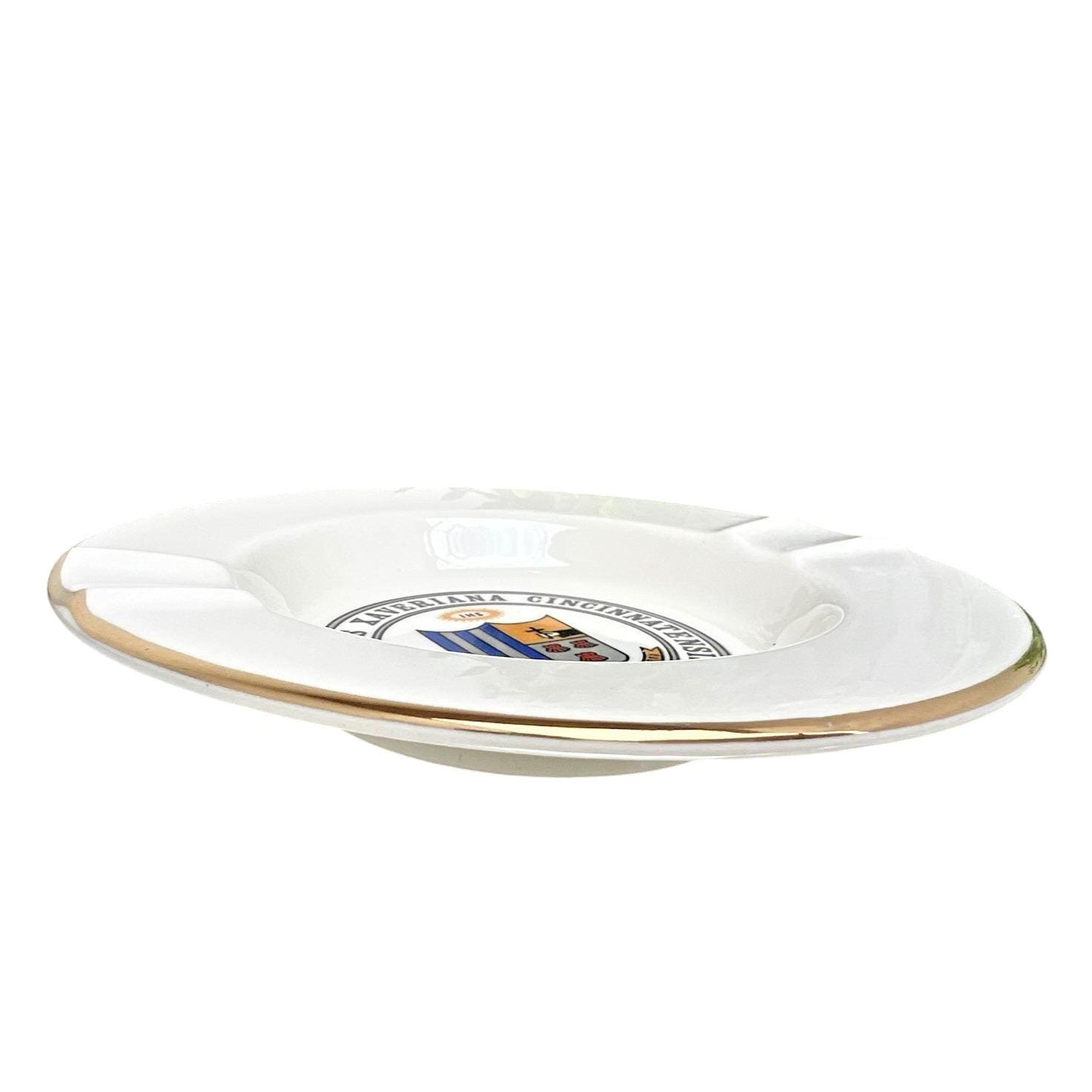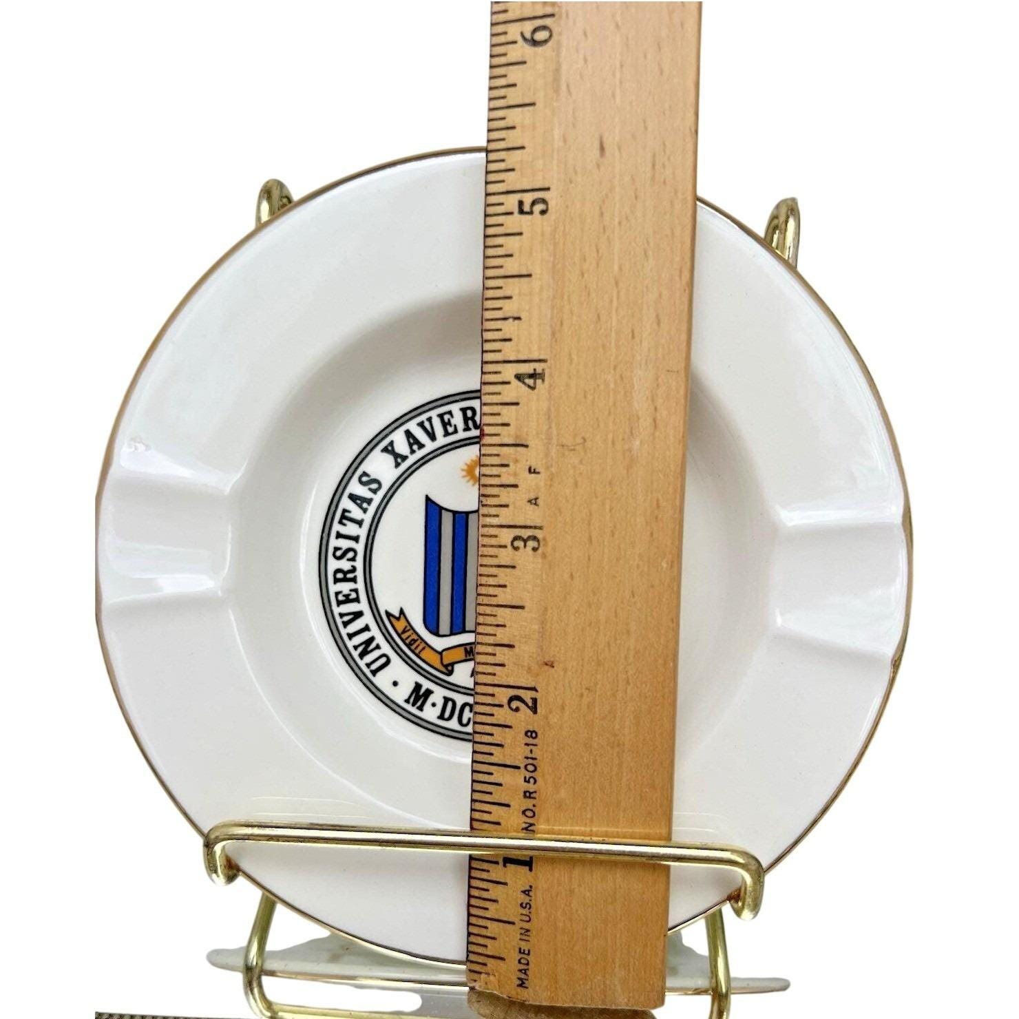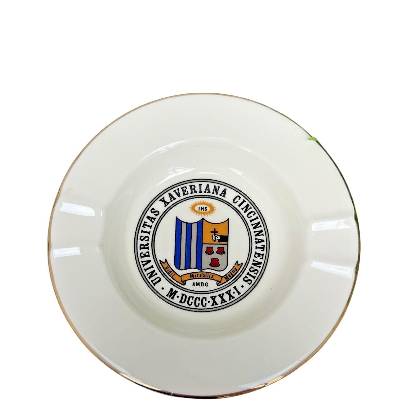 Vintage porcelain ashtray featuring the official seal of Xavier University in Cincinnati, Ohio.