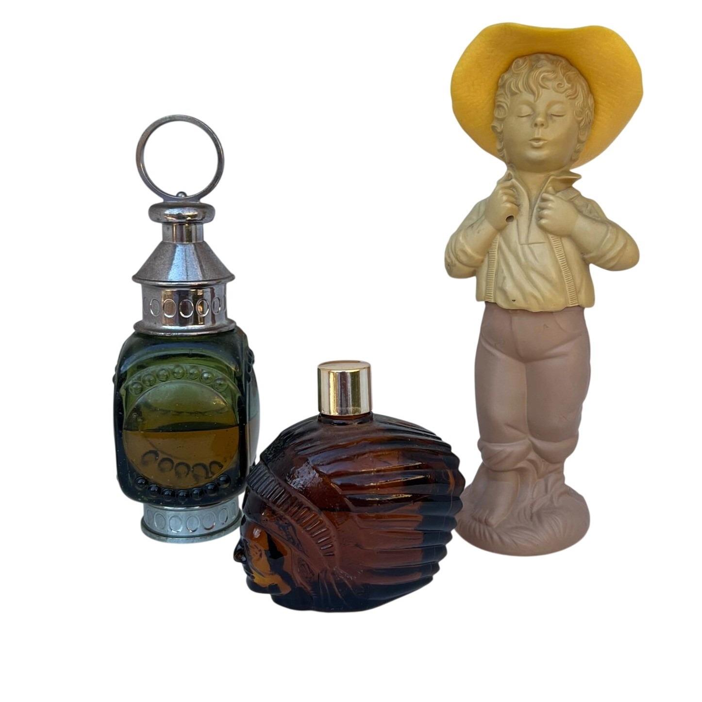 For sale is a beautiful "instant collection" of three vintage Avon figural decanters from the 1970s. All three bottles are Full (New Old Stock) and come in their original decorative boxes. These have been well-preserved and are perfect for any vintage vanity or Avon collector.