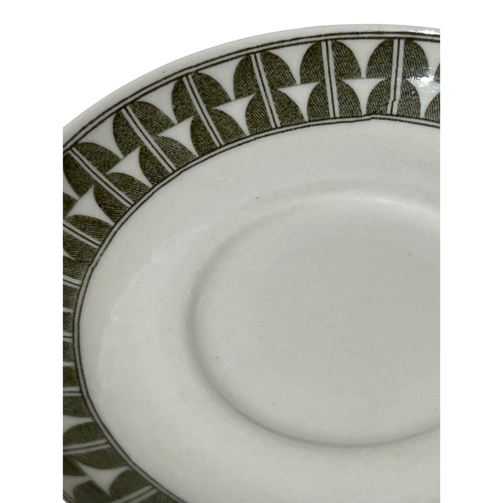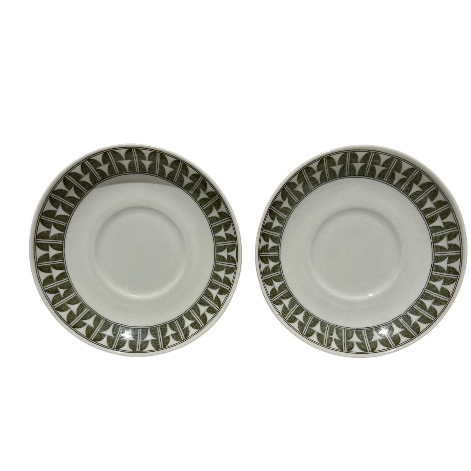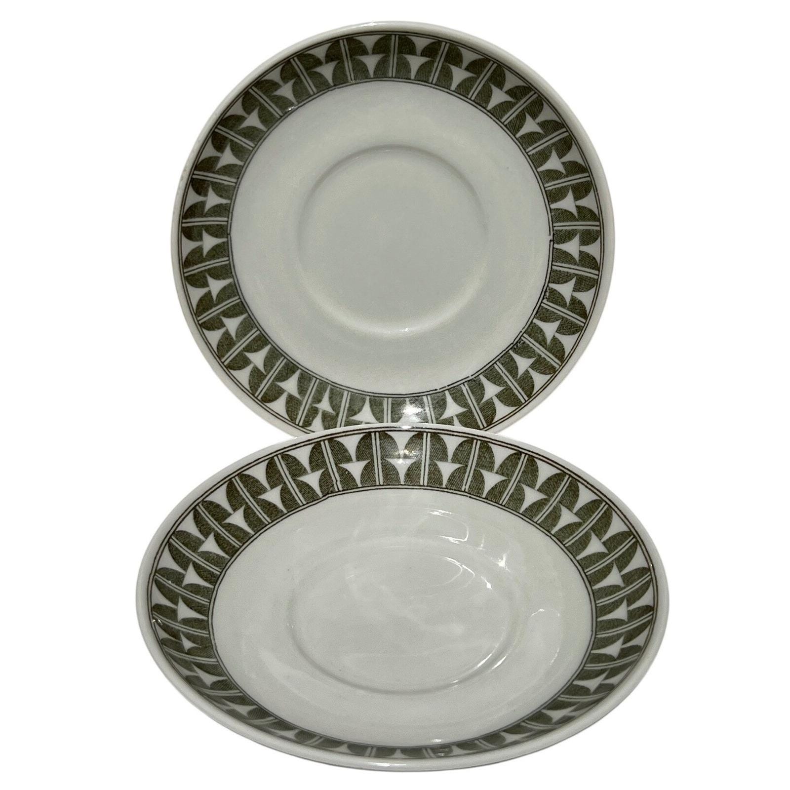 Elevate your Scandinavian tableware collection with this authentic set of two Gefle "Variant" saucers. Made in Sweden during the mid-century era, these saucers feature a vibrant green geometric pattern that perfectly embodies the clean, functional aesthetic of the period.