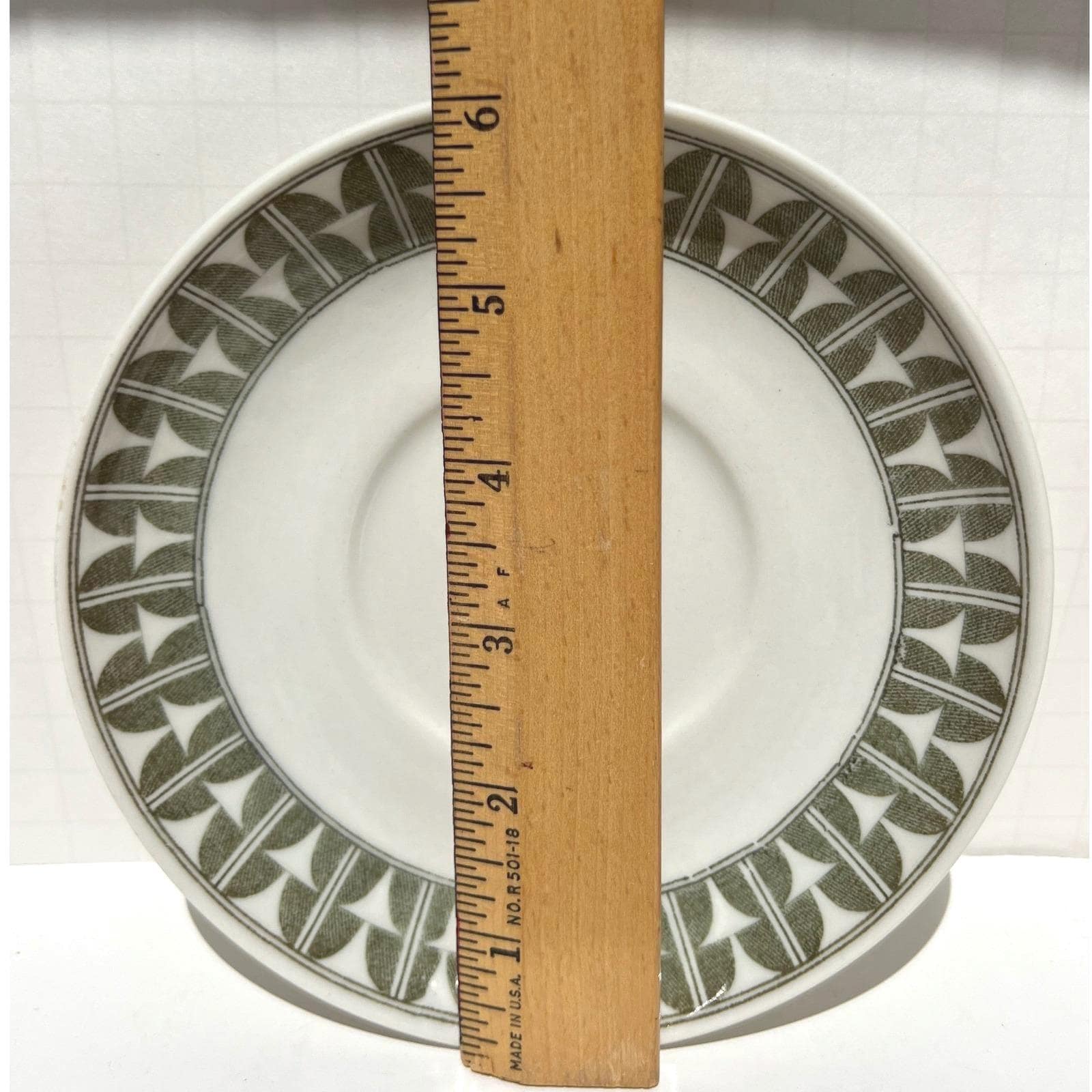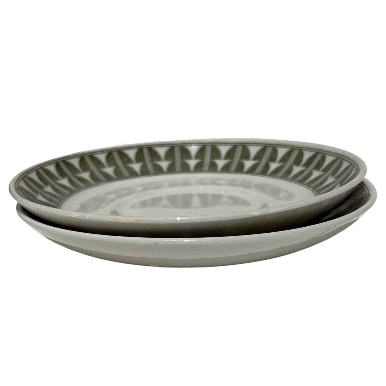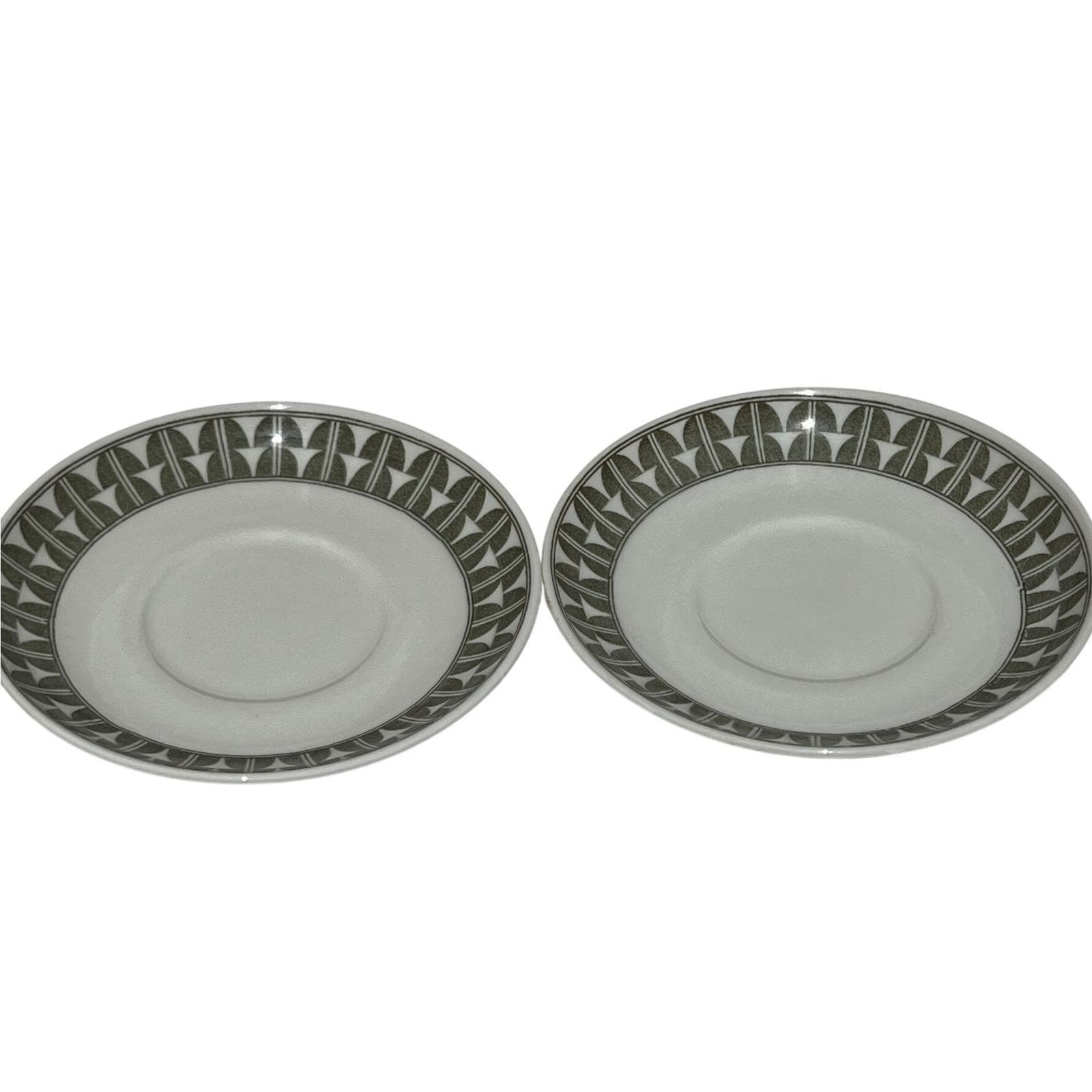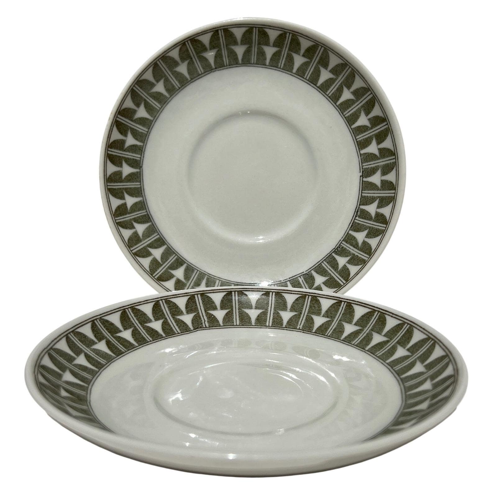 Elevate your Scandinavian tableware collection with this authentic set of two Gefle "Variant" saucers. Made in Sweden during the mid-century era, these saucers feature a vibrant green geometric pattern that perfectly embodies the clean, functional aesthetic of the period.