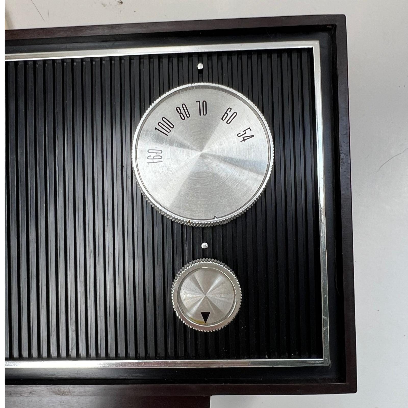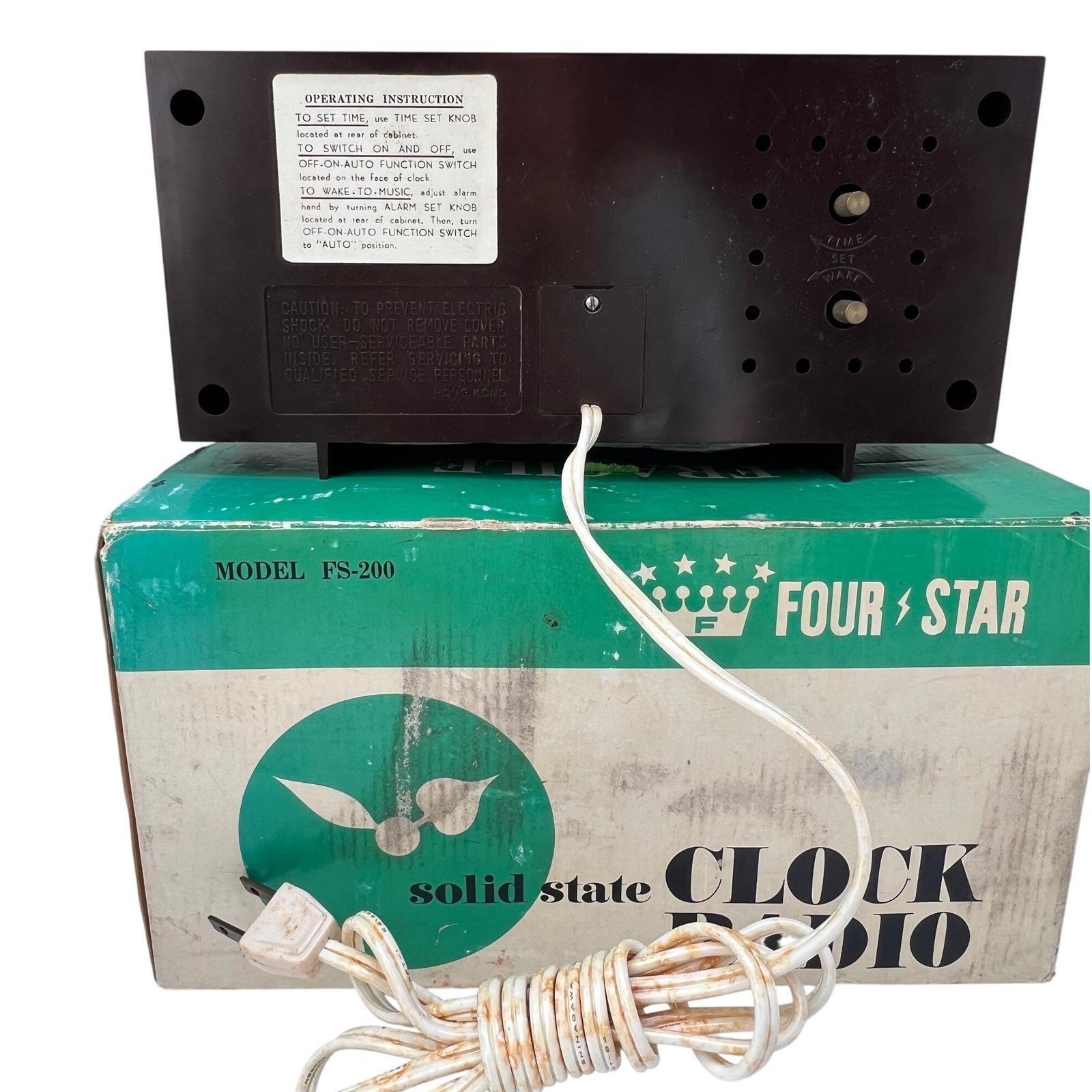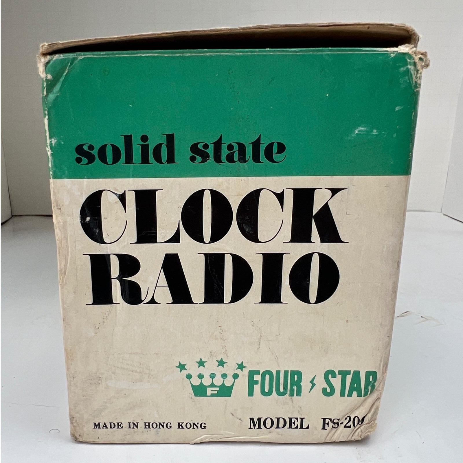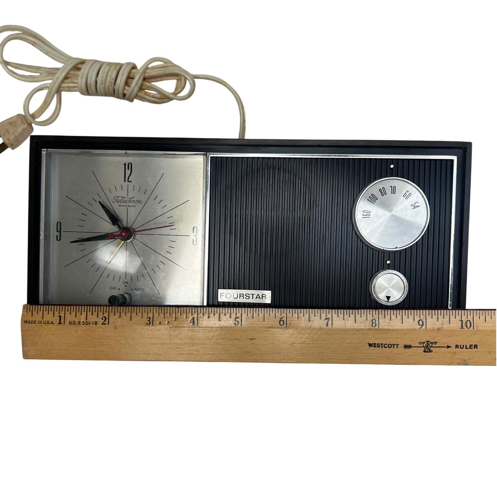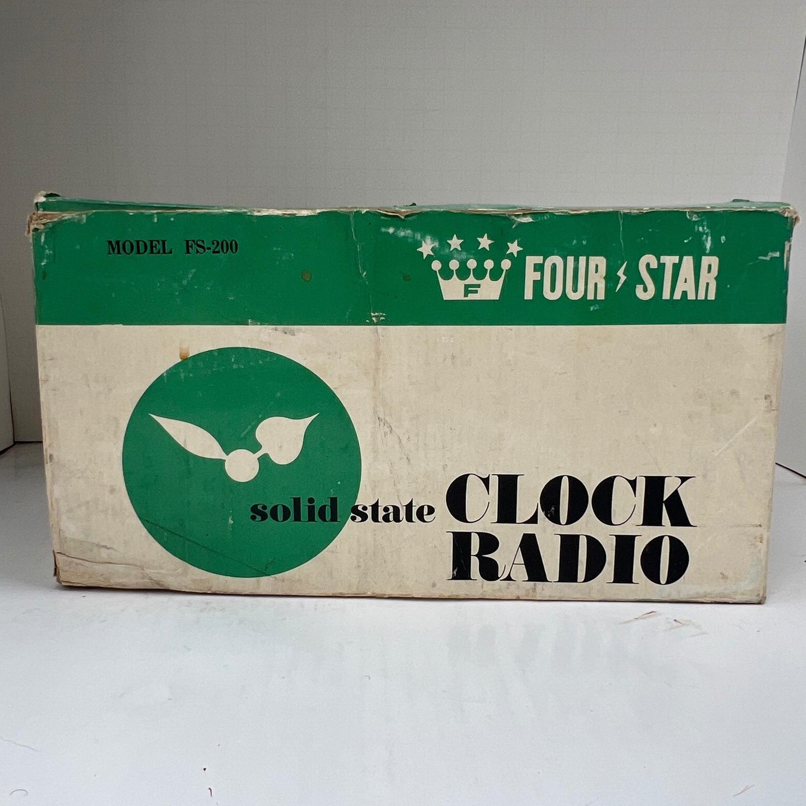 A vintage Four-Star solid-state clock radio with that unmistakable mid-century feel...warm faux woodgrain, a clean silver-tone clock face, and a textured black speaker that grounds the whole design. It's simple, functional, and quietly nostalgic in the best way.