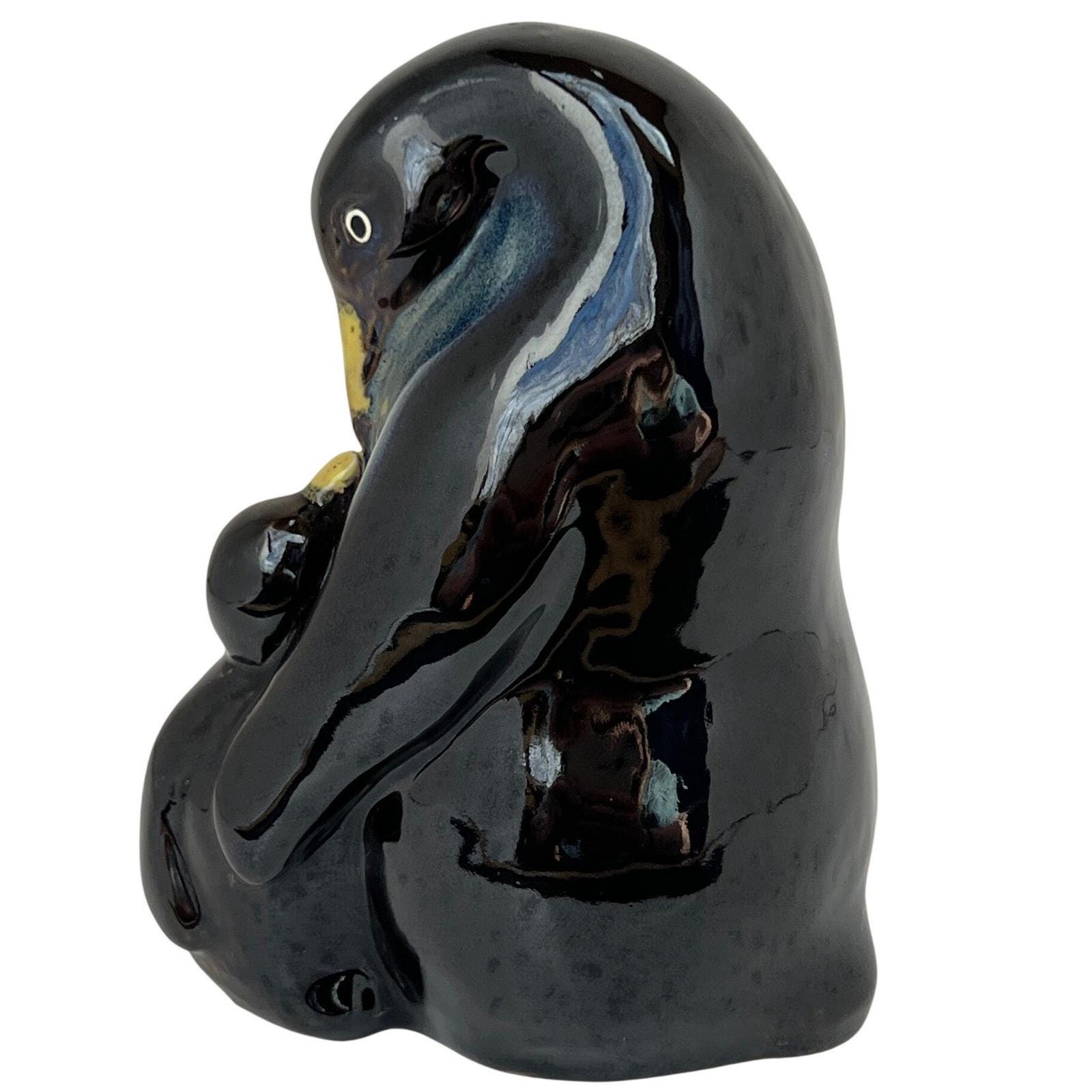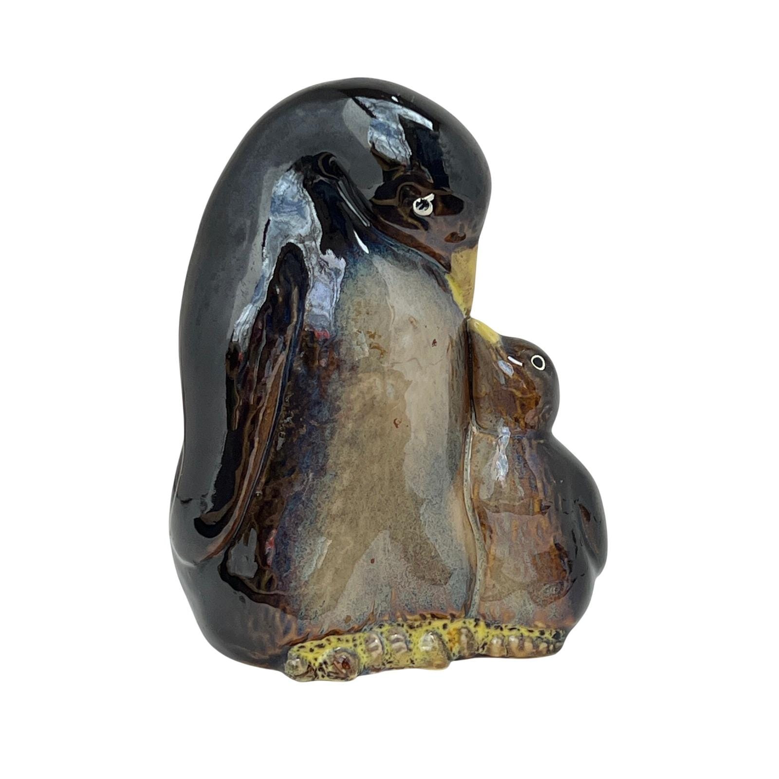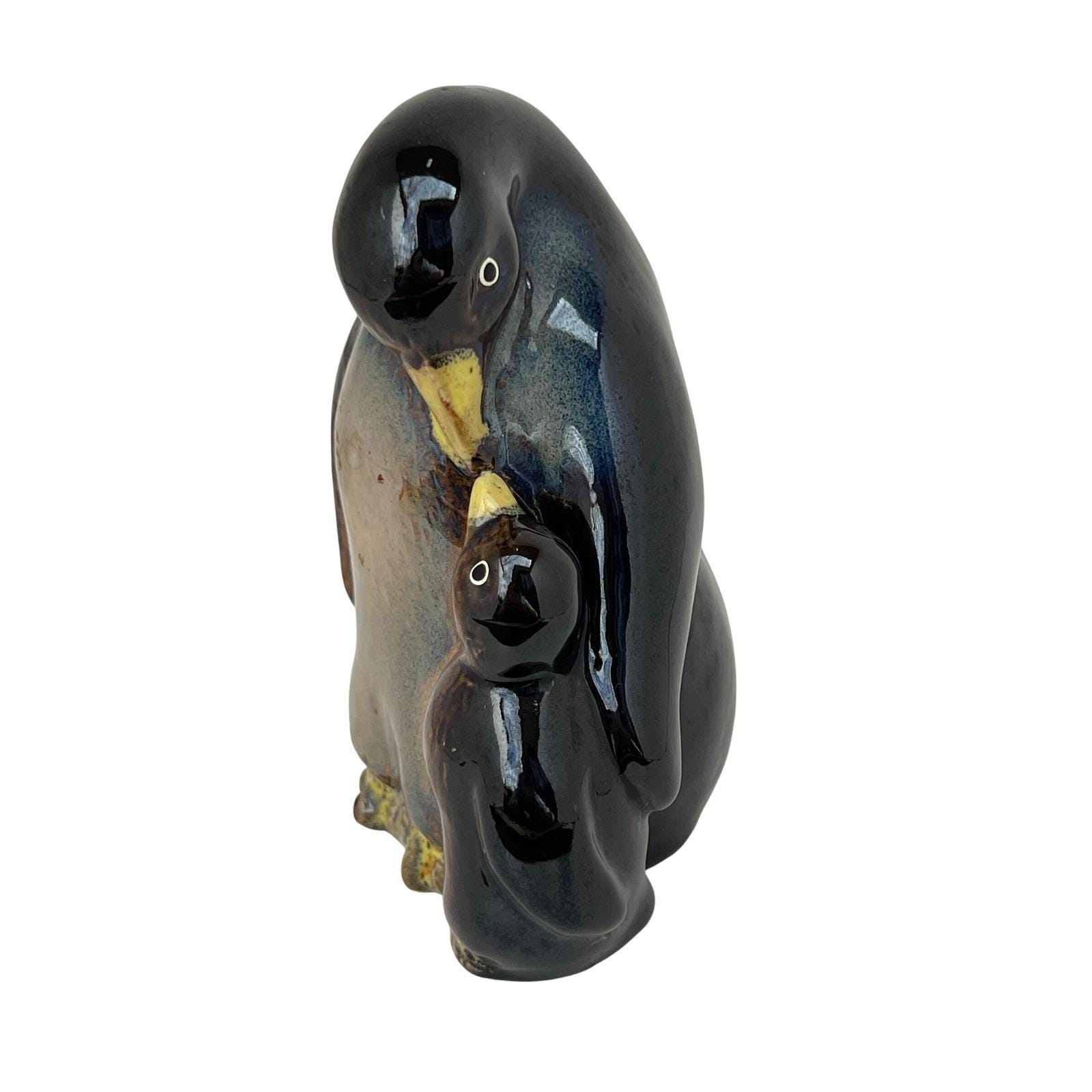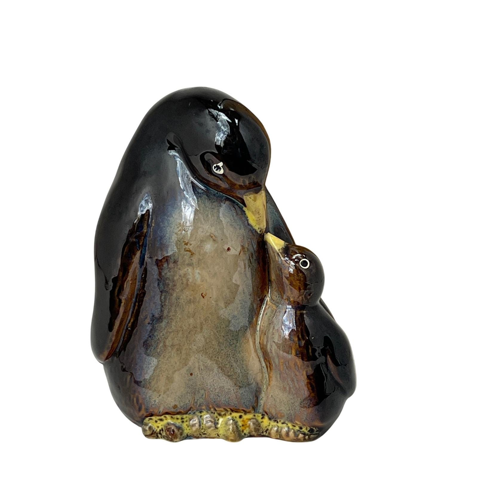A vintage ceramic penguin pair, parent and chick, finished in a rich, high-gloss drip glaze. The deep blues and earthy browns melt together beautifully, with just enough warmth in the tones to give it that cozy, lived-in feel. It's simple, but it carries a lot of presence.