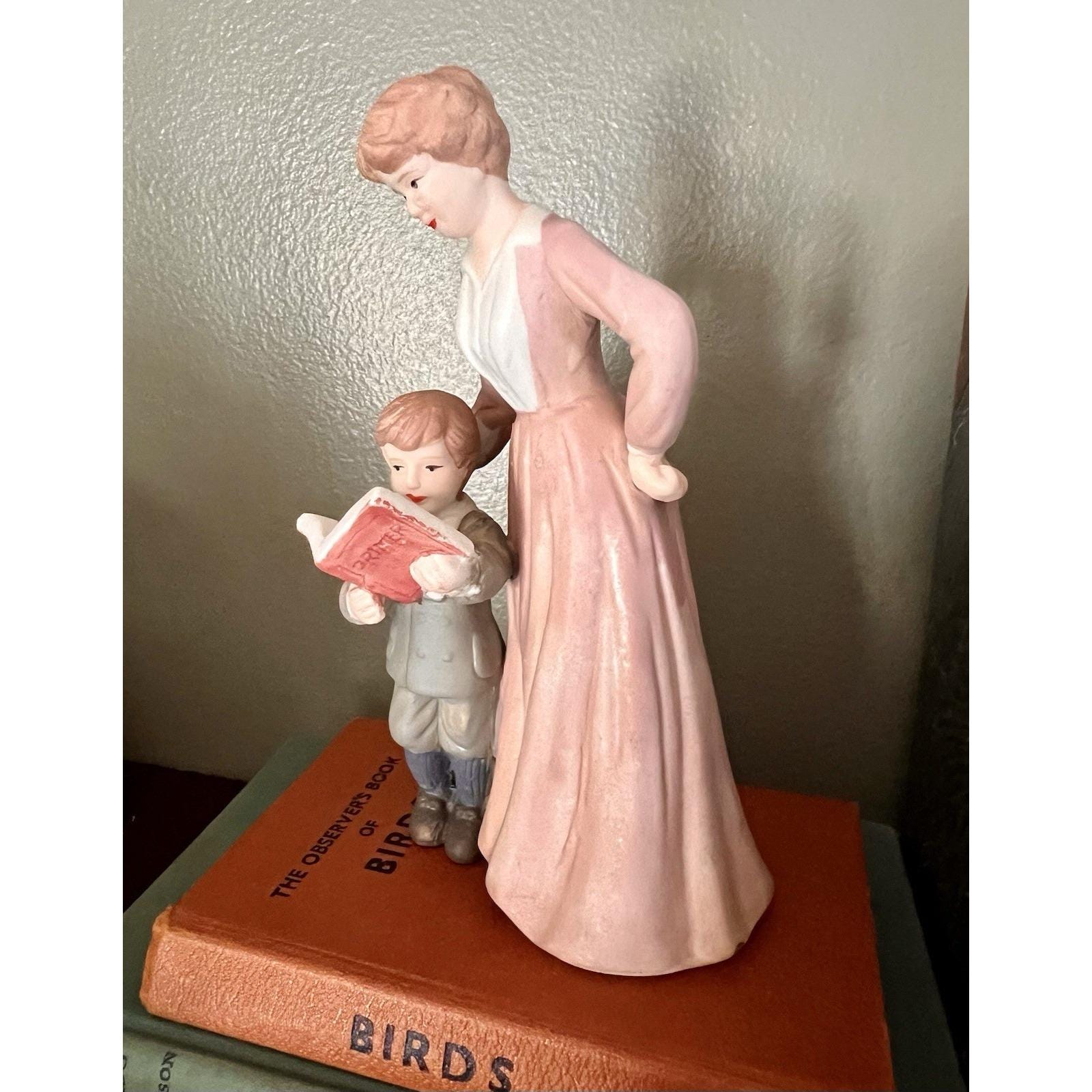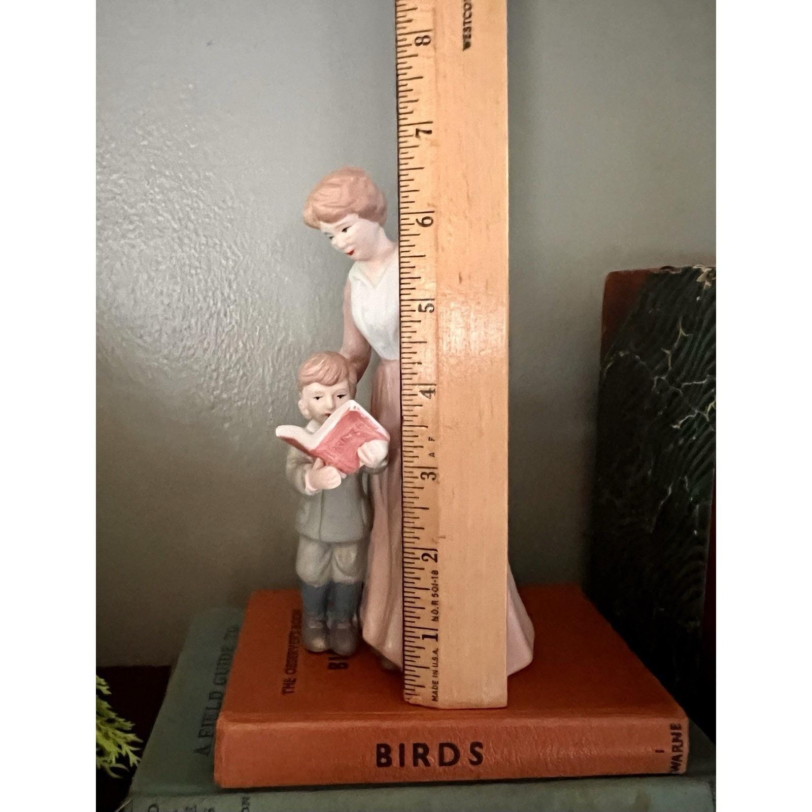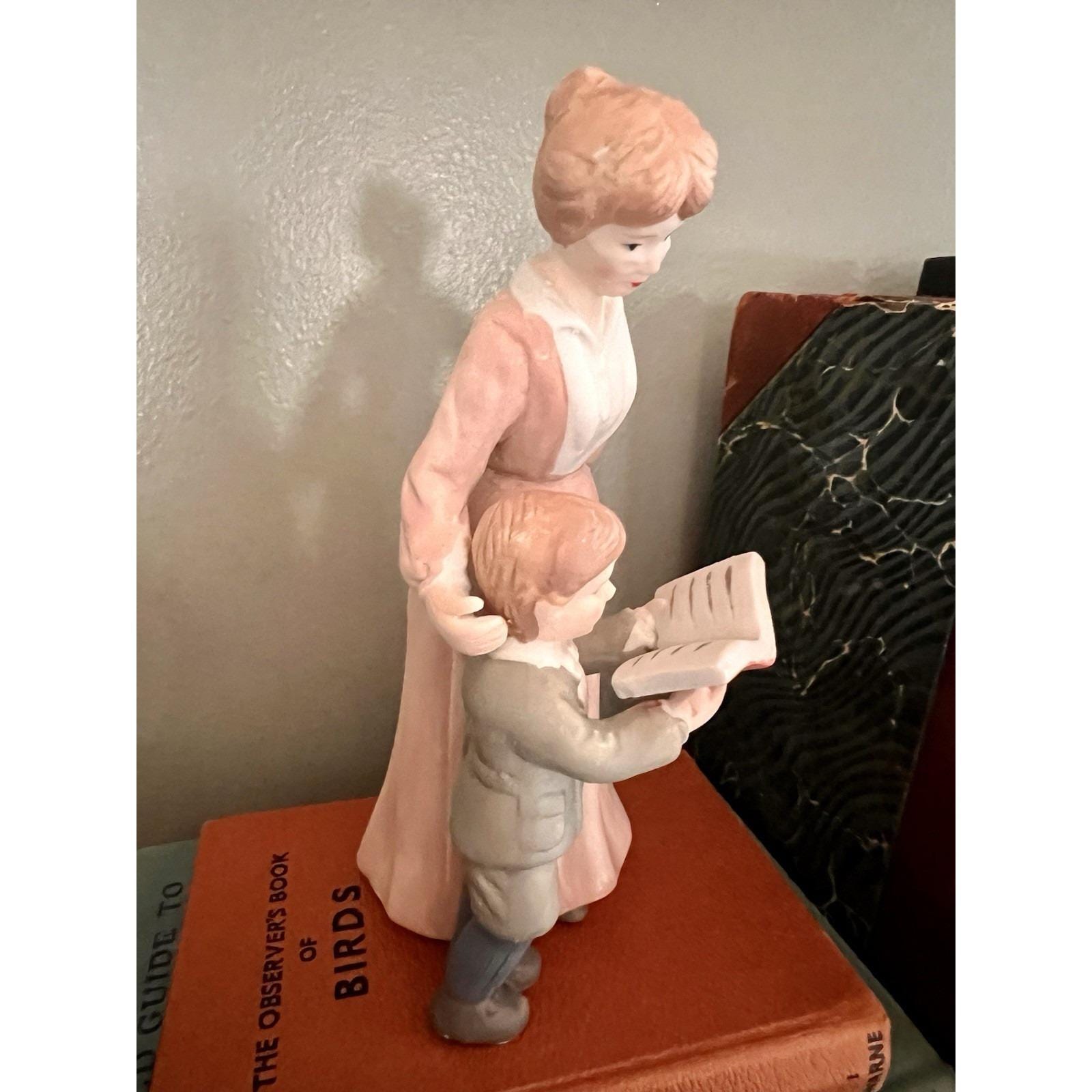 This pre-owned Enesco Treasured Memories Teacher and Pupil Porcelain Figure from 1985 is a beautifully crafted collectible item featuring a mother, teacher, and librarian character in a multicolor design. Standing at 7 inches tall, this original figurine is part of a late 20th-century collection with a 1980s style. Made of porcelain and showcasing a matte finish, this figurine depicts a touching scene between a teacher and pupil, making it a perfect decoration for any room in the house. Packaged in a box, this figurine is a charming addition to any collection of decorative figurines.