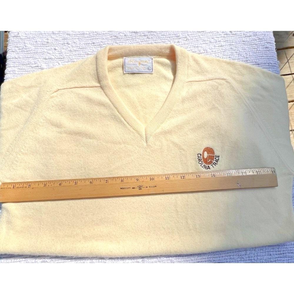 Lightweight Orlon acrylic makes it comfortable without being bulky, perfect for layering or wearing on its own. Features a classic V-neck and a small, embroidered Carolina Trace logo for that understated vintage golf look.