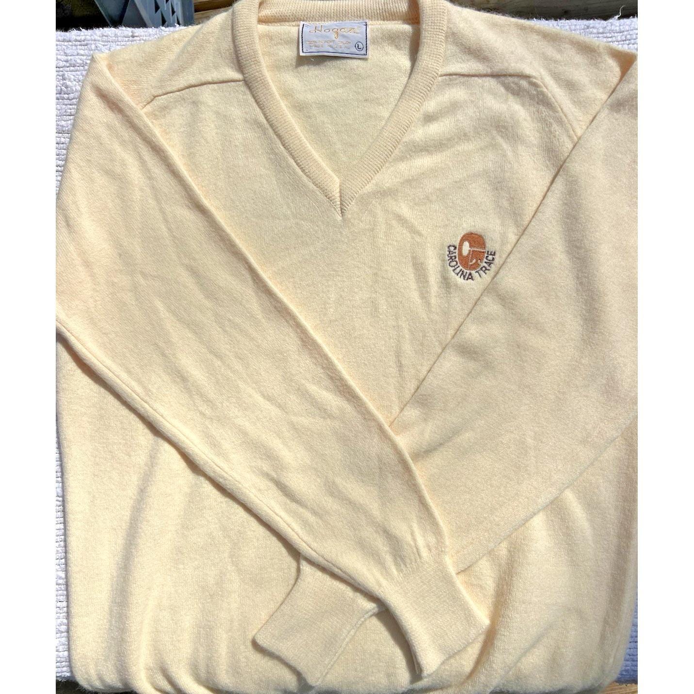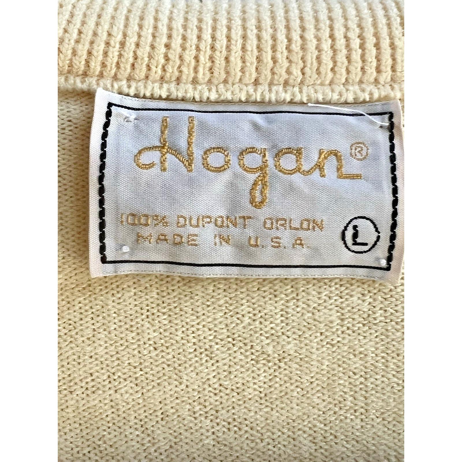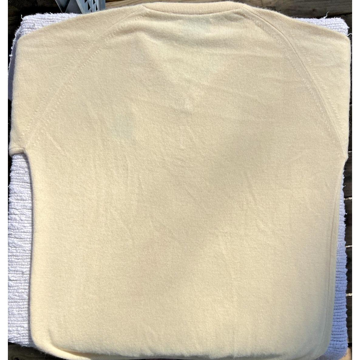 Super soft vintage Hogan sweater from the 1980s in a faint yellow / buttery cream tone. The color is subtle and warm, almost a soft pastel, giving it a really easy, relaxed feel that can lean unisex.